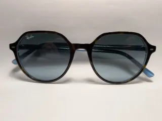 Gafas de sol Ray-Ban originales, modelo THALIA color carey y azulado. Diseño hexagonal redondeado. Modelo: RB 2195 THALIA 1316/3M Montura: Carey Oscuro con detalles en Azul (Acetato). Lentes: Azul/Gris Espejado (3M). Categoría de filtro solar 2N (Protección media). Medidas: 53□18−145 Estado: Muy buen estado. Tanto las lentes como la montura están en muy buenas condiciones, con signos mínimos de uso. Accesorios: Se venden con estuche y gamuza originales. Sin caja. El estuche tiene una rotura típica en los estuches de Ray-Ban, justo debajo del clip. 16