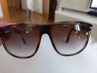 Gafas de sol Ray-Ban con montura de tortuga y lentes degradadas. - Montura de acetato con estampado de tortuga. - Lentes con efecto degradado de marrón a transparente. - Logo de Ray-Ban en la lente izquierda.SON ORIGINALES. Menos la funda tengo esa zq perdida la mía.estan impolutas.