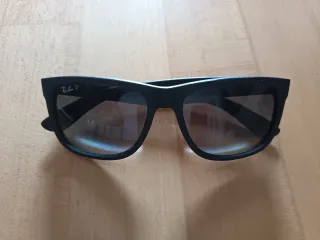 Gafas de sol Ray-Ban modelo Justin con lentes polarizadas. - Montura negra. Material de goma que con el tiempo se ha vuelto pegajoso. - Lentes polarizadas.