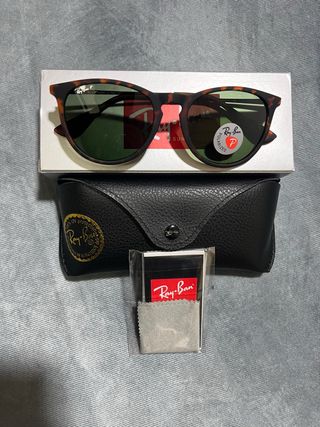 Gafas de sol Ray-Ban con un diseño moderno y elegante. - Montura con estampado tortoise. - Lentes polarizadas para mayor protección. - Incluye funda y paño de limpieza.