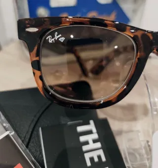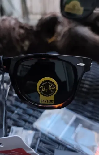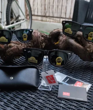 Gafas de sol Ray-Ban originales del 2021 modelo Wayfarer bastante usadas. Me costaron unos 150€ hace 4 años, se me ha roto la lente derecha. Si le cambias cristales tienes unas rayban para rato.