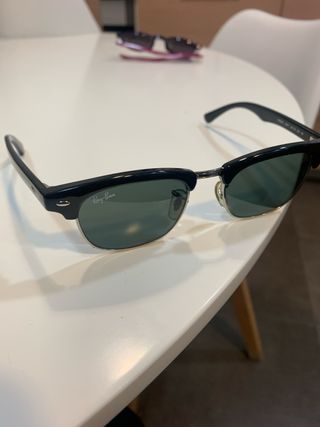 Gafas de sol Ray-Ban modelo Clubmaster con lentes verdes tipos espejo. - Montura de acetato y metal. - Lentes con acabado espejo sin la más mínima señal ni rayada. Precio no negociable. Se hacen envíos por wallapop y también entrega en mano en Barcelona, Terrassa y en Riells.