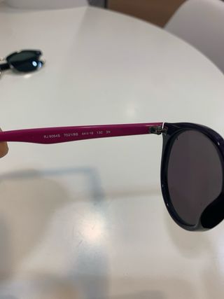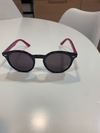 Gafas de sol Ray-Ban para niña en buen estado, con un diseño moderno. - Montura de color negro. - Varillas de color morado.