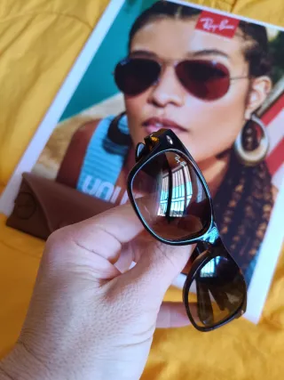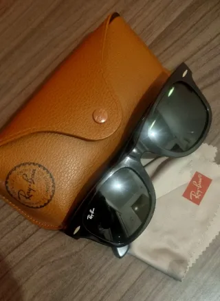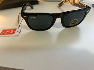 Gafas de sol Ray-Ban modelo Wayfarer originales y unisex. Talla 50. - Montura de color negro. - Lentes con señales minimas (verlo en la última foto) Precio no negociable. Se hacen envíos por wallapop y también entrega en mano en Barcelona, Terrassa y Riells.