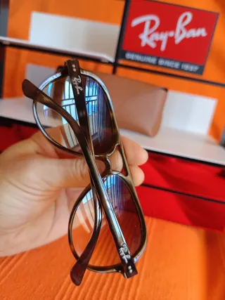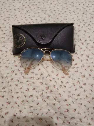 Gafas de sol Ray ban aviador originales y unisex. Talla 55. con montura plateada y lentes azules en prístino efecto degradado. Cristales impolutamente perfectos, sin señales ni rayadas. - Diseño clásico. - Lentes con tinte azul. - Montura metálica plateada. Precio no negociable. Se hacen envíos por wallapop y también entrega en mano en Barcelona, Terrassa y en Riells.