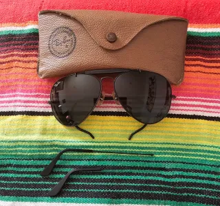 Auténticas ray-ban fabricadas en EE. UU. por Bausch & Lomb. Modelo antiguo de alta calidad, muy robusto. Talla: 62/14 (Calibre grande). Diseño: Montura negra con barra superior y varillas de "cola de ratón". Cristales: G-15 con grabado BL y logo blanco. Garantía: Grabado "B&L USA" en el puente. Extra: Incluye su funda original marrón y dos juegos de patillas. Estado excelente, pieza de colección. Te llevas lo que ves en las fotos