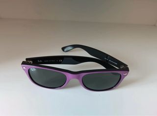 Gafas de sol Ray-Ban Wayfarer con un llamativo color morado y montura negra. - Incluye funda protectora roja. - Lentes con protección UV.