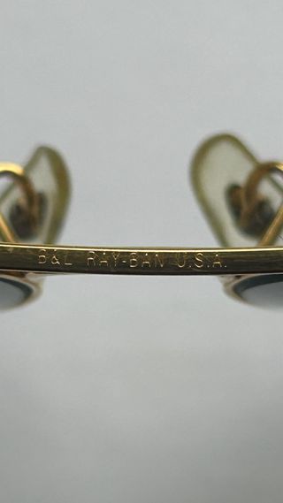 Gafas de sol Ray-Ban B&L USA originales, un clásico de estilo. Modelo Aviator clásico fabricado en USA por Bausch & Lomb (grabado B&L en lente). Montura dorada con doble puente. Estado impecable, sin rayas ni defectos. Pieza vintage auténtica anterior a la producción italiana, muy valorada por coleccionistas. - Montura dorada. - Diseño aviador icónico.