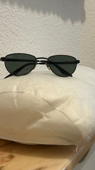 Gafas de sol Ray-Ban vintage, modelo original Bausch & Lomb. Modelo elegante estilo oval/aviator pequeño, muy noventero. Presentan una pequeña marca en la lente izquierda que no se aprecia al llevarlas puestas ni afecta la visión. Sin funda original. Gafas auténticas vintage, ideales para colección o uso diario con estética retro. - Montura metálica negra. - Lentes verdes.