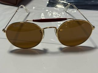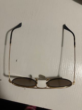 Gafas de sol Ray-Ban con un diseño icónico. - Montura combinada en negro y dorado con desgaste de la montura dorada como se ve en la foto. - Lentes oscuras sin graduar -sin su estuche solo con la caja de Ray Ban Se regalan dos gafas de sol nuevas por la compra de estas