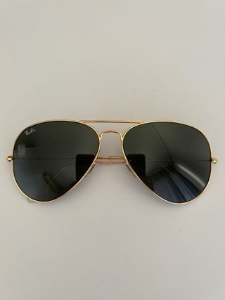 Gafas de sol Ray-Ban modelo Aviator Classic Originales. Calibre 62 Están en perfecto estado, sin marcas ni roces. - Montura dorada. - Lentes verdes. - Con polarización. Se vende solo las gafas el estuche no lo tengo, lo perdí.