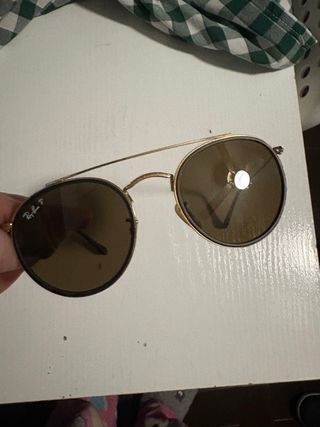 Gafas de sol Ray-Ban en perfecto estado, con un diseño moderno y elegante. - Montura en tonos marrón y gris degradado - Incluye funda original Ray-Ban. Me las he puesto un par de veces y me quedan pequeñas. Están completamente nuevas. Me costaron 152 en la óptica y las vendo por 80! La mitad!!