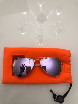 Gafas de sol Ray-Ban modelo Aviator Mirror. Las gafas no las he llegado ni a estrenar como se puede ver por la etiqueta. - Montura plateada. - Lentes con efecto espejo.