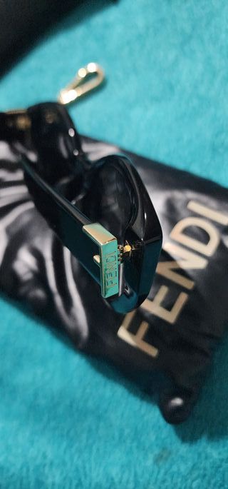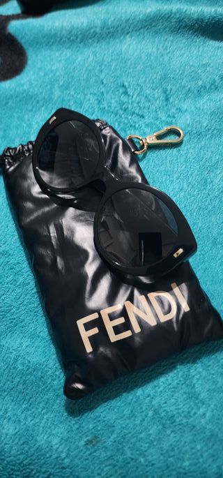 Gafas de sol Fendi First con montura negra y detalles dorados. - Diseño redondo. - Incluye funda protectora.