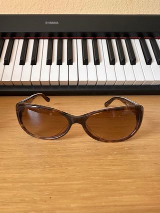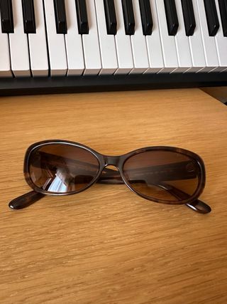 Elegantes gafas de sol con montura. - Montura de color negro. - Detalles metálicos en dorado. - Tengo solo las gafas sin el case.