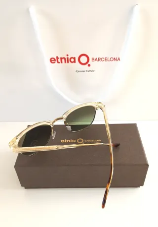 Gafas de sol Etnia Barcelona con montura dorada y lentes verdes. Incluyen estuche, caja y etiqueta. - Montura metálica y acetato. - Lentes minerales HD. - Diseño Vintage Collection.