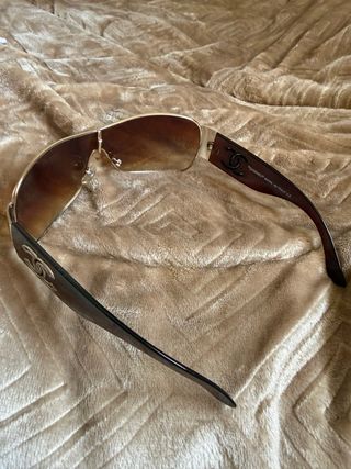Gafas de sol Chanel de estilo vintage. No tienen caja, y le falta la almohadilla nasal derecha. Por todo lo demás están en perfecto estado. - Montura con detalles dorados. - Lentes degradadas en tonos marrones. -Precio negociable.