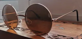 Gafas de sol con un diseño redondo y montura metálica en tono dorado. Usadas. Verificar estado de las gafas en las fotografías. - Gafa redonda unisex. - Estilo vintage.