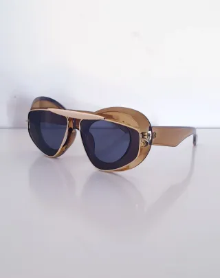 Gafas de sol de estilo vintage con un diseño llamativo. - Montura de acetato con acabado translúcido. - Lentes con tinte marrón. - Diseño de gran tamaño.