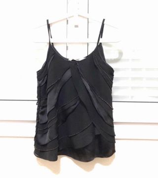 Blusa negra con volantes y unos abalorios que se pueden quitar si se desea porque van cocidos. Con forro interior. Precio original 39,99€. Ver más blusas en mi perfil! Tamb vendo SmartTV OLED 55pulg LG, alfombra d diseño,cajoneras,cama,canapé,puff grande,aspiradora Rowenta,espejos grandes, batidora/picadora TAURUS,cuadros,equipos musculación,teléf fijos,impresora CANON inalámbrica,Auriculares Bluetooth,Altavoces pequeños,bicicleta spinning ENEBE,una WII fit plus,relojes,libros,gafas,ver mi perfil!!