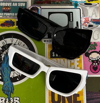 Par de gafas de sol unisex, compradas para una sesión de fotos de moda urbana, las vendo por que no las uso. Están nuevas, solo se utilizaron para hacer una foto. Son dos gafas unas con moldura blanca y la otra con moldura negra.