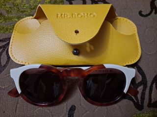 Gafas de sol MR.BOHO, elegantes y modernas. Son de pasta, con montura bicolor marrón y blanca. Se incluyen en una funda protectora amarilla. - Diseño redondo. - Incluye funda.