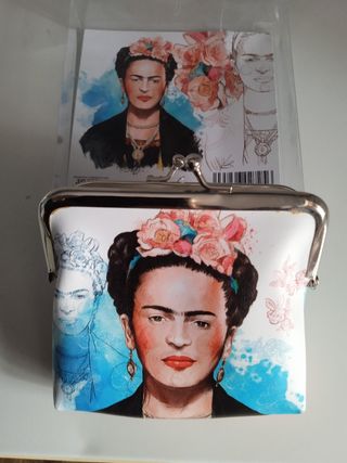 Conjunto de funda para gafas y cartera con diseño de Frida Kahlo. - Funda de gafas con asa.. - Cartera con cierre de broche. - Ilustraciones de Frida Kahlo y detalles florales.