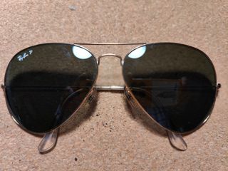 Gafas de sol Ray Ban Aviator, polarizadas. Son gafas elegantes y en buen estado. Talla 62, grande. - Modelo Aviator. - Color de la montura: dorada. - Color de las lentes: verde polarizado. Originales, no copia.