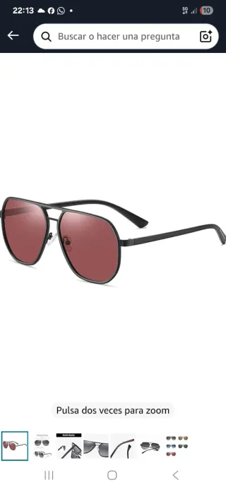 Gafas de sol estilo aviador con montura de metal y lentes polarizadas. - Diseño retro. - Montura negra. - Lentes rojas.