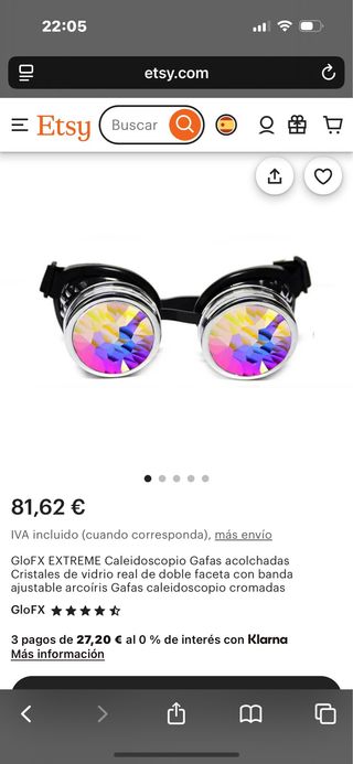 Gafas de caleidoscopio con cristales de doble faceta y banda ajustable. - Diseño acolchado. - Cristales de vidrio real. - Banda ajustable. - Efecto cromado.