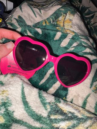Gafas con forma de corazón, ideales para eventos o festivales. - Montura de color rosa brillante. - Lentes oscuras.