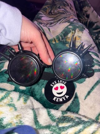 Gafas con efectos especiales, ideales para festivales y eventos. - Diseño con púas. - Lentes con efecto caleidoscópico. - Correa ajustable.