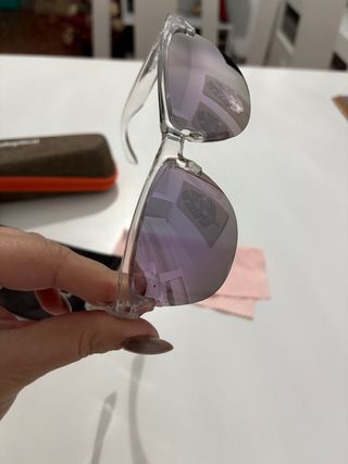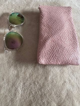 Gafas de sol con montura transparente y lentes de espejo. -Vienen con su estuche rosa . -Cualquier cosa no dude en consultar.