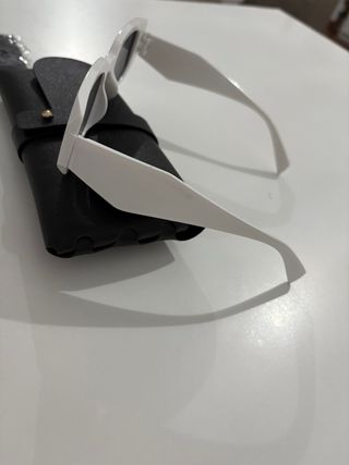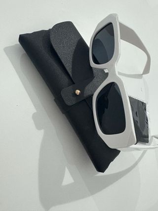 Gafas de sol con un diseño moderno y actual. - Montura blanca. - Lentes oscuras. - Incluye funda protectora negra.