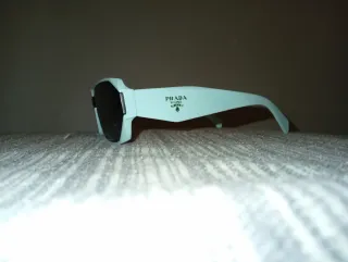 Gafas de sol Prada Milano con un diseño moderno y elegante. - Montura en color azul claro y negro. - Lentes oscuras.
