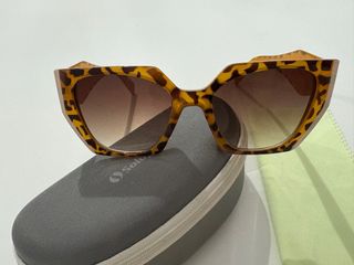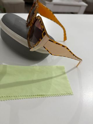 Gafas de sol con un diseño moderno y elegante. - Montura de acetato con estampado de carey. - Lentes con protección UV. - Patillas finas y cómodas. - Incluyen funda.