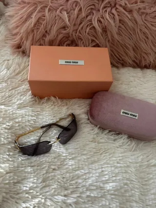 Elegantes gafas de sol Miu Miu con un diseño sofisticado. - Montura en tonos marrón y dorado. - Estilo moderno y chic. - No usadas nuevas - Precio negociable