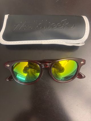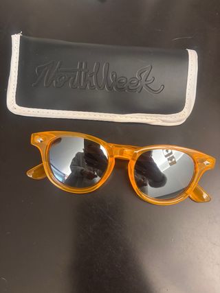 Gafas de sol Northweek polarizadas con montura azul y lentes naranjas. - Incluye funda protectora. - Incluye pegatinas Northweek. tiene una leve rozadura casi imperceptible como he puesto en la última foto.