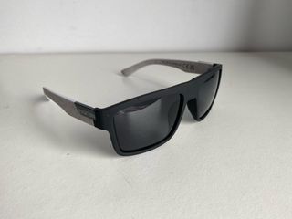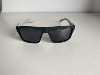Gafas de sol con un diseño deportivo y moderno. - Montura en color negro. - Lentes en tono grisáceo. - Logo de la marca visible en la patilla.