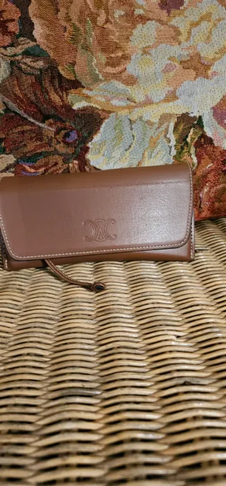 Estuche para gafas de la marca Céline. - Color marrón. - Diseño elegante con el logo de la marca grabado.