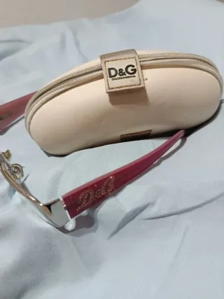 Elegantes gafas de la marca Dolce & Gabbana. - Montura en tono plateado. - Varillas en color rosa con detalles. - Incluye funda protectora con el logo de la marca.