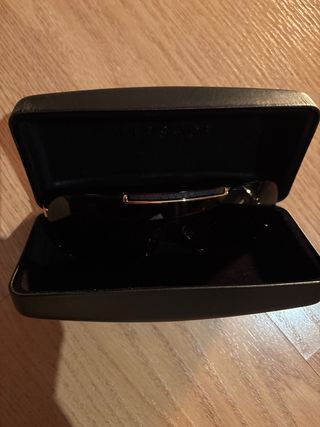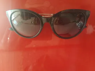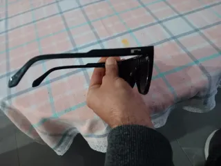 Gafas de sol con montura negra. - Diseño moderno y elegante. - Lentes oscuras para protección. - Incluye funda protectora. Nuevas no pude cambiarlas porque perdi el ticket