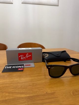 Gafas de sol Ray-Ban modelo Wayfarer. - Montura de acetato. - Lentes con protección UV. - Incluye funda y paño de limpieza.