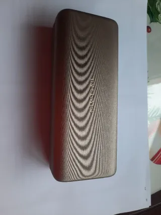 Gafas de sol con montura dorada y lentes rosadas, sin usar. - Diseño moderno y elegante. - Incluye funda protectora.