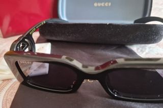 Elegantes gafas de sol de la marca Gucci. - Montura de color negro con detalles dorados. - Diseño moderno y sofisticado.
