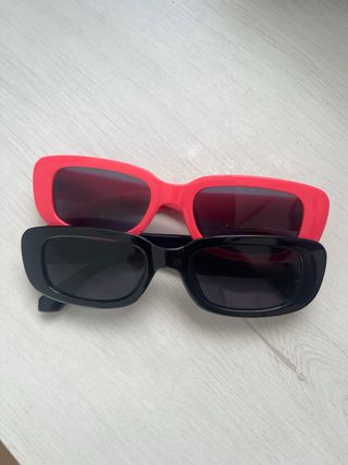 Conjunto de dos pares de gafas de sol con monturas de diferentes colores. - Un par con montura rosa. - Un par con montura negra.