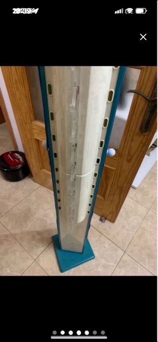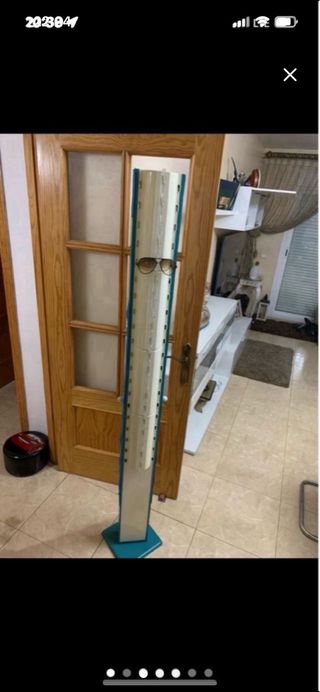 Expositor giratorio para gafas, ideal para tiendas o coleccionistas. - Diseño vertical y compacto. - Base estable en color teal. - Múltiples ranuras para exhibir gafas.