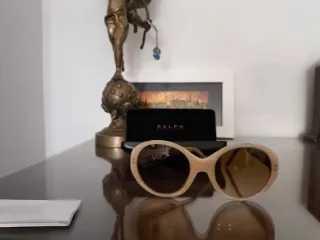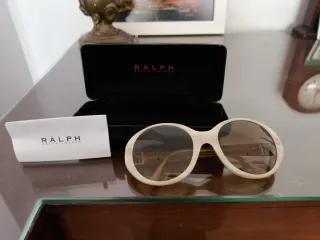 Elegantes gafas de sol Ralph Lauren con un diseño moderno. - Montura en tonos beige y marrón. - Incluye estuche original.