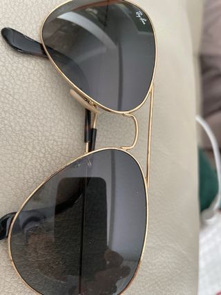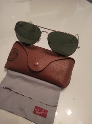 Vendo gafas de sol Ray-Ban modelo Aviador clásicas. Montura metálica en color oro y lentes verdes G-15. Están en muy buen estado, sin apenas marcas de uso. Incluyo funda original marrón de Ray-Ban. Un modelo atemporal que nunca pasa de moda.