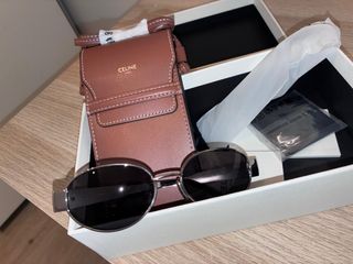 ¡Espectaculares y totalmente nuevas! Vendo estas gafas de sol Celine Triomphe Metal 01 (referencia CL40235U 16A), un icono del lujo silencioso y el accesorio más buscado de la temporada. Detalles del artículo: Impecables, a estrenar. Nunca se han usado. Montura ovalada de metal en acabado plateado brillante, muy ligera y elegante. Lentes: Color gris con filtro de categoría 3 (protección 100% UVA/UVB) Logo Triomphe de Celine en relieve en ambas varillas. Calibre 54mm | Puente 18mm | Varillas 135mm. Hechas en Italia Se entregan con su set completo original: estuche de piel Celine, gamuza de limpieza y caja protectora.